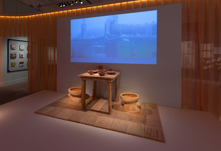 Available products include tiles, flowerpots and vases, huge blocky benches, mugs and dishes and, perhaps most appropriately, a replica of a 1920s lavatory, ‘the icon which expresses the cyclical value of the production underlying The Shit Museum’: a receptacle made of the substance it receives.