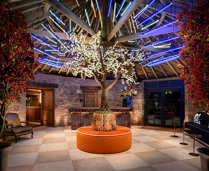 Jeffrey’s Interiors transformed the cattle sheds on a 150-acre estate in Northumberland into The Tempus, a unique hospitality venue. The design goal was to offer an enriching guest experience in each of the 15 eclectic-themed bedrooms, from tropical to Eastern-inspired décors, with vibrant colours and imaginative elements. A Van Gogh-inspired lighting installation and a variety of themed spaces like a bar and orangery, ensure each visit feels like an adventure. Despite a complex design, the venue maintains visual cohesion and modern luxury, maximising the original estate’s features, and achieving high acclaim post-launch.