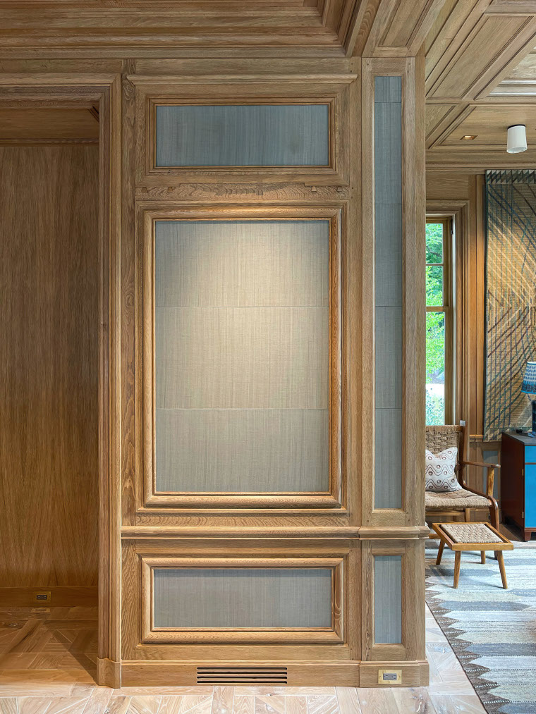 Féau Boiseries’s ability to bridge classical design with contemporary execution was a natural fit for the aesthetic of this home. The result was a bespoke creation in Cerris white oak, inset with hand-loomed French horsehair — a perfect expression of timeless elegance and artisanal mastery.
