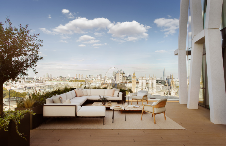But what really sets the penthouse apart is the extraordinary views across London. These can be enjoyed from the terrace which has been landscaped and furnished with three seating arrangements each suited to a different style of entertaining.