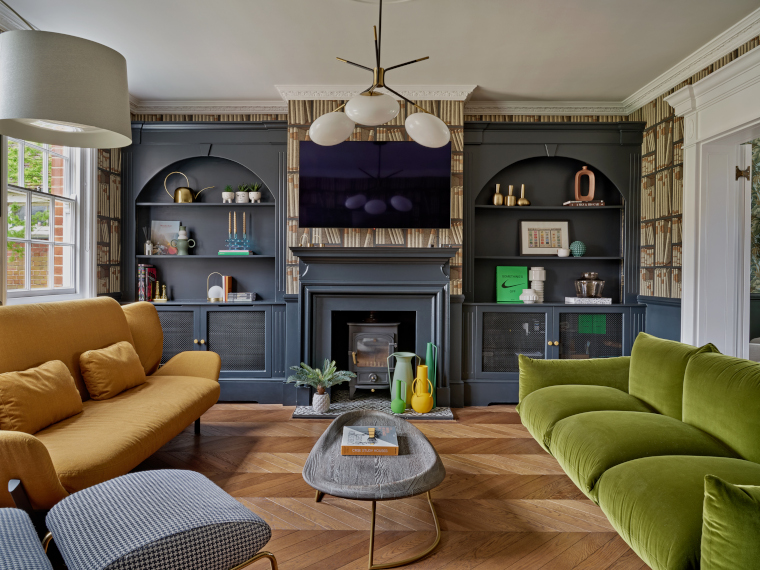 What did you enjoy most about this project? Even though it was built in 1990, I loved bringing the more traditional characteristics of the house out. When we bought the house, it was top to toe cream with light woods, but I knew it had the potential to look amazing once some bold colours, patterns and textures were added. As an example, simply by painting the mantelpieces dark and adding patterned tiles in the hearth made them look much more traditional and impactful. The dark oak chevron floors, Ben Pentreath lattice stair runner and bold panelling all added to the warm, dramatic atmosphere that you often find in a period home. I like to think we added the ‘Georgian’ to this Georgian style house.