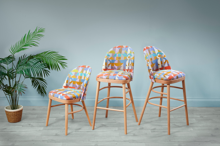 Gabriella James, Chairmakers creates made to order wood-framed chairs and bar stools. Made in England, using traditional upholstery methods, the frames can be hand-painted and colour-matched to suit any interior. Felicity also champions British textile design, so that both the Gabriella James Signature and Portfolio collections include fabrics by, amongst others, Kit Kemp, Fermoie, Margo Selby and Tori Murphy.