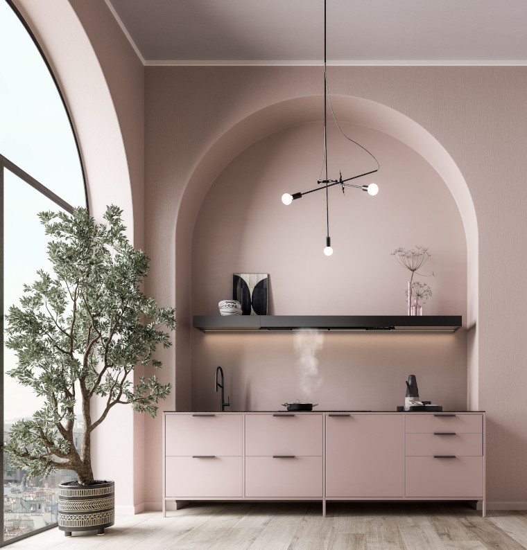 Made of black painted steel with a black satin aluminium profile, the underside of the Shelf offers an integrated LED strip with dynamic light to illuminate the entire surface below. The front panel can be matched to adjacent units for design harmony. (for more kitchen inspiration click here)