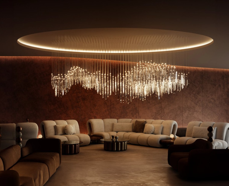 British lighting and furniture studio, Cameron Design House, has launched Vetta. Meaning water in Finnish, the chandelier takes inspiration from the natural landscape of Finland. Vetta’s design is a delicate interplay of static symmetry and light, where hand-cut and polished glass crystals form linear shapes, evoking the shimmering brilliance of sunlight filtering through ice beneath the ocean’s surface. (You can meet designer Ian Cameron here)