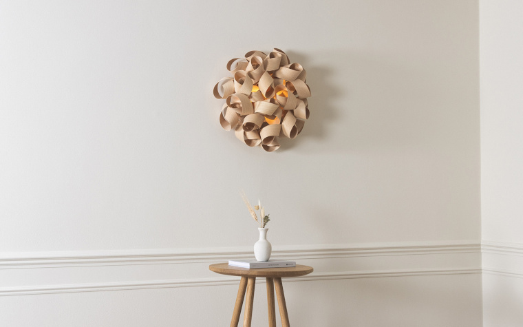 Sustainable lighting specialists Tom Raffield have added new designs to their range of steam-bent lighting. New to the range, the Shoal Wall Light (above) is handcrafted from thirteen swirls of sustainably sourced ash, oak, or walnut, interwoven in flowing layers. The twisting, textured surface creates a calming visual impact, while giving a bold display of light and shadow