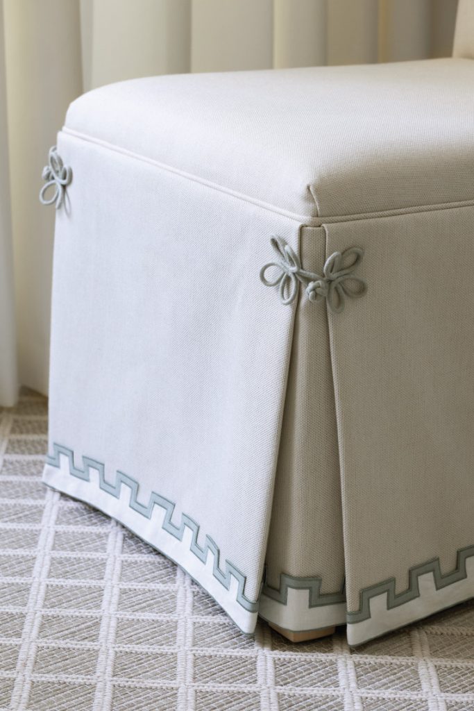 Devon, from Samuel & Sons, is a delicate handcrafted collection of borders inspired by decorative architectural elements and the quiet beauty of fine linen. With every stitch and curve, Devon evokes an heirloom quality, subtle nostalgic details and vintage charm. Adding a touch of whimsy and movement, softening the straight lines of contemporary spaces while still feeling tailored and refined